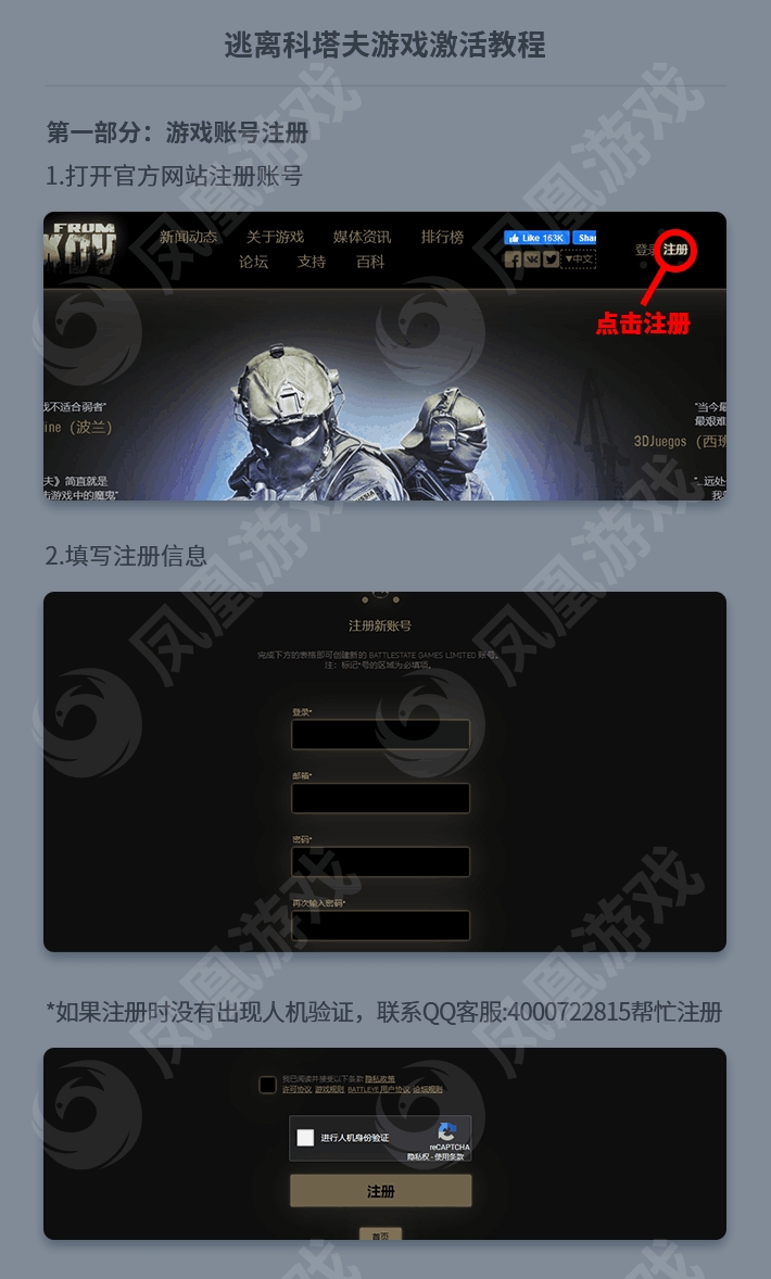 | 官网注册账号:https://www.escapefromtarkov.com/,登录后点击个人资料-兑换优惠券,激活后个人资料内下载登录器。 |