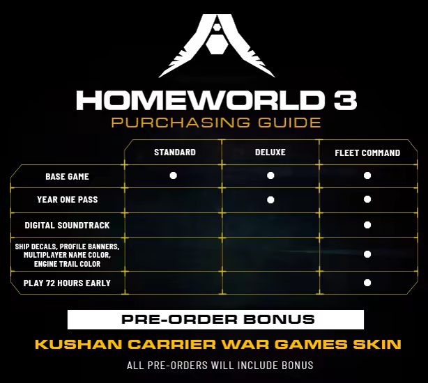 Developed by Blackbird Interactive (BBI). BBI, Blackbird Interactive, and the associated logos are registered trademarks. © 2024 Gearbox. Published by Gearbox Publishing. Homeworld, Gearbox & the Gearbox Publishing logos are registered trademarks, and the Homeworld logo is a trademark, of Gearbox Enterprises, LLC. All rights reserved.