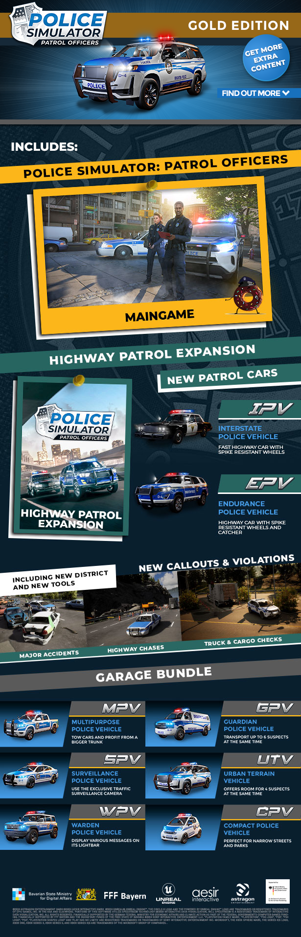 © astragon Entertainment GmbH © Aesir Interactive GmbH © Unreal®, Unreal Engine™, the circle-U logo and the Powered by Unreal Engine™ logo are trademarks or registered trademarks of Epic Games, Inc. in the USA and elsewhere. Portions of this software utilize SpeedTree® technology (©2020 Interactive Data Visualization, Inc.). SpeedTree® is a registered trademark of Interactive Data Visualization, Inc. All rights reserved. Financially supported by the FFF Bayern